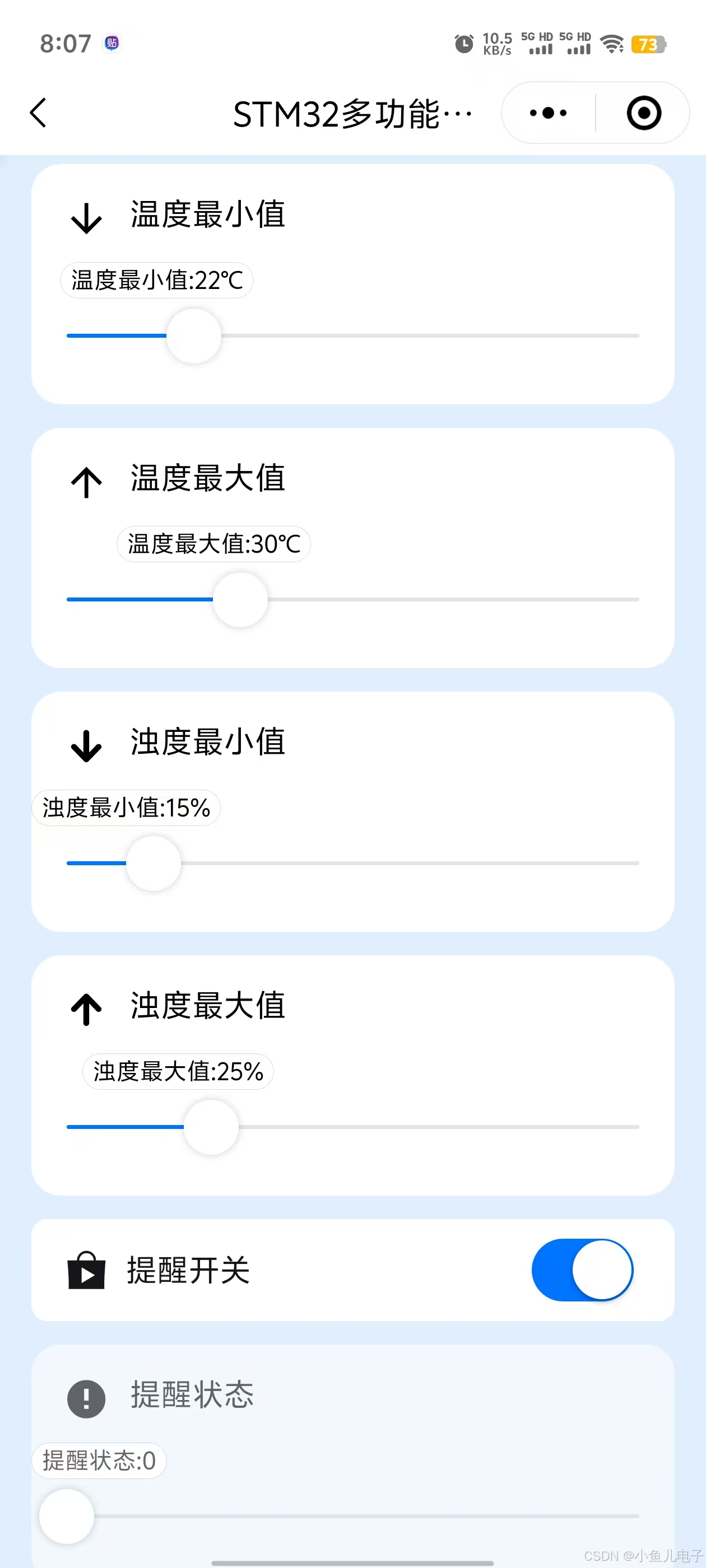 4、设定阈值:可以按键结合屏幕设定设定水温、水位、浊度的最适阈值。