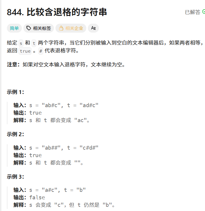 844. 比较含退格的字符串 - 力扣(LeetCode)