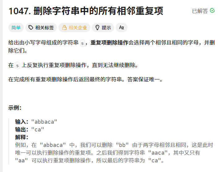 1047. 删除字符串中的所有相邻重复项 - 力扣(LeetCode)