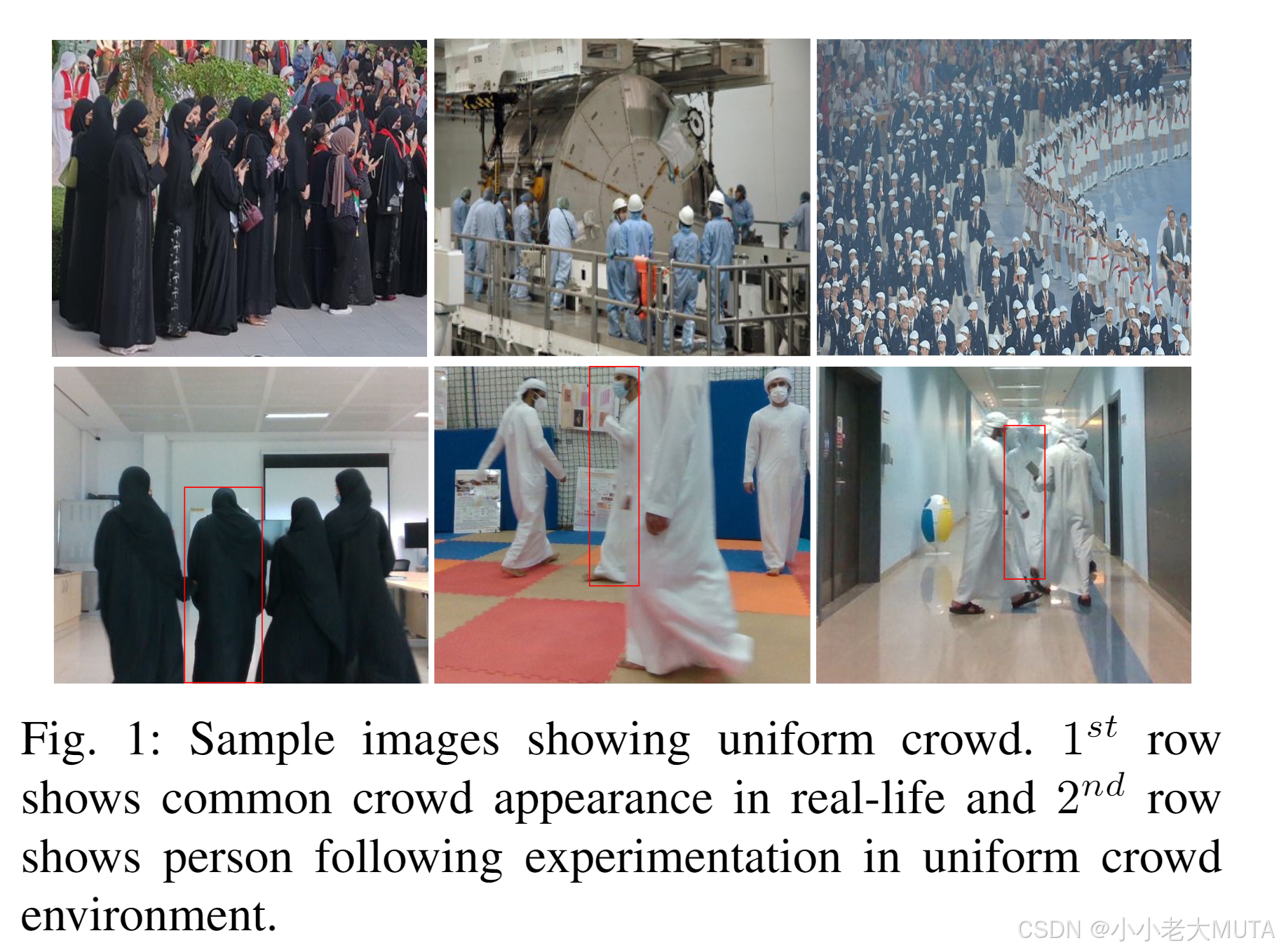 然而,现存基准数据集很少涉及统一人群场景下的人员跟踪,即在目标人物周围的人穿着相似服装的环境中跟踪特定人物。这种情况常见于工业车间、体育馆、学校等场所,如图1所示,也普遍存在于海湾地区及许多亚洲国家中。在此类环境中,仅依赖RGB图像进行人员跟踪对当前最先进的视觉跟踪器而言非常困难,因为它们主要基于外观特征进行感知。当目标与非目标穿着相同服装时,跟踪性能往往会大幅下降。
