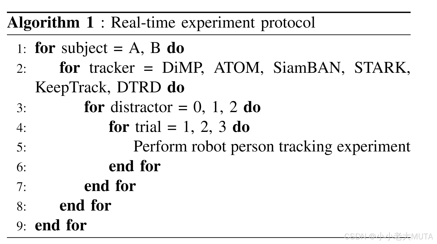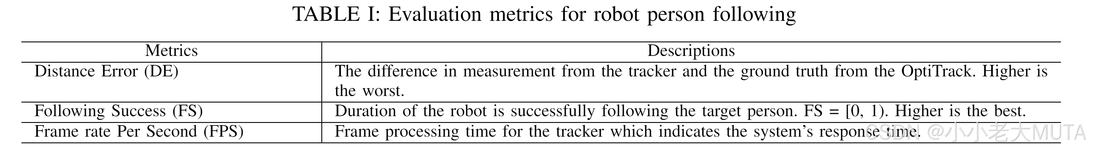 • 对多个当前最先进的跟踪器在统一人群环境中的人物跟随性能进行了深入实验评估。