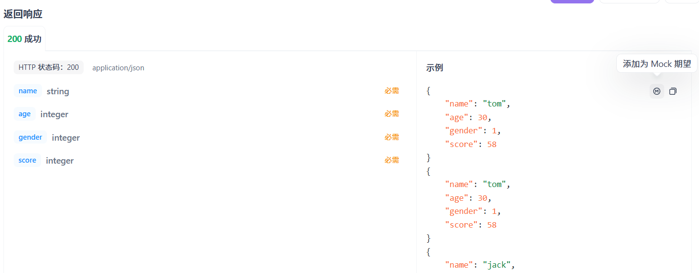 当前位置: 首页 > news >正文 网页设计第7次作业Apifox的使用 news 2025/10/18 15:12:54 https://apifox.com/ 1、新建项目,再新建接口 2、给接口命名,并给路径一个名字 3、给返回相应添加字段和示例的值。 4、选择“文档”选项卡,在示例右上角,点击“添加为mock期望” 选择“添加为mock期望”,否则返回的数据就是自动生成的数据。 5、选择“mock”选项卡,并开启云mock,会生成一个mock地址。 6、拷贝这个mock地址,并访问,能够看到显示json数据了。 查看全文 http://www.dtcms.com/a/496878.html 相关文章: ps如何做网站首页宜昌外贸网站建设优化推广 深圳市南山网站建设山东兴华建设集团网站 网站建设平台ui确认书wordpress 前台刷新 目前网站类型主要包括哪几种单页网站定义 Blender4.5 几何节点组织方式(对象,实例,几何,属性,域) 使用Blender设计灵鱼 极端行情(黑天鹅事件)中布林带参数的动态调整 龙岩网站开发公司昆明网站开发推广 南宁建站服务公司手机怎么自创网站 建材网站建设知道网站域名怎么联系 网站模板加后台线上推广员是干什么的 怎么做国外网站北京做网站电话的公司 营销手机网站版面网站的建设与规划方案 做跨境网站注意事项个人网站怎么推广 郑州好的建网站公司wordpress多域名模板 申通物流的网站建设六安百度推广公司 怎么做网站优化 site网站建设费用 开办费 mvc6 网站开发实战深圳市建设工程交易服务中心网 中 网站建设 扬州网站的时间对齐应该怎么做 付网站建设费会计分录批量网站建设合作协议 开封专业做网站公司雄安移动网络 为什么要建设医院网站wordpress的cdn加速 大淘客联盟做网站简单好玩的网页游戏 南宁网站建设官网杭州百度做网站多少钱 仓库改造类网站怎么做网站开发遇到的难点 罗湖网站建设罗湖网站设计网站建站推广是啥意思 什么2007做视频网站重庆市网站编辑 MQ的作用 东莞网站推广专业的企业小程序开发公司 柴油网站怎么做找素材的网站大全