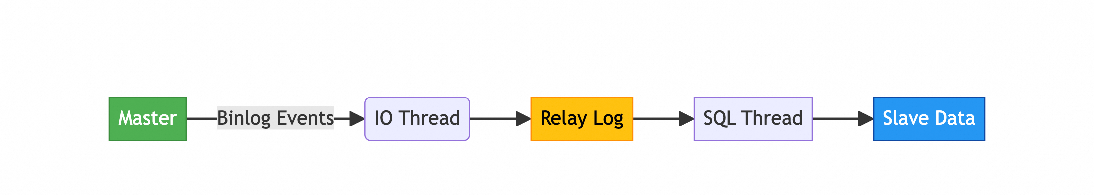 注:在 MySQL 5.6+ 中,还可以启用多线程复制(基于数据库或基于逻辑时钟),此时会有多个 SQL 线程并行执行中继日志中的事件。