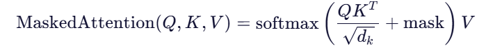 - 掩码方式:将未来位置的注意力分数设为 −∞,经 softmax 后为 0