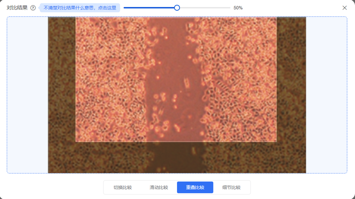 上传最多10张相似图像(如重复实验的结果图),系统自动以第一张为参照,提供四种专业对比模式: