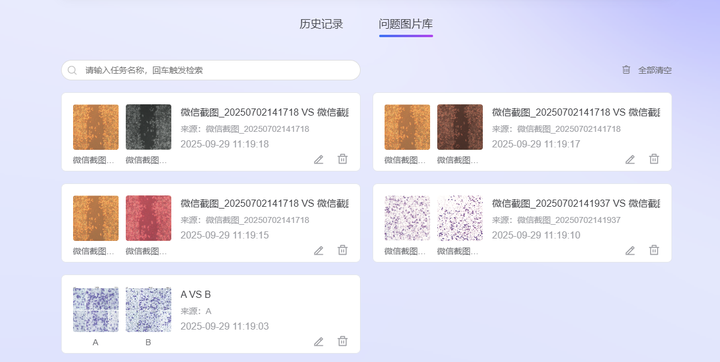每次对比操作都会生成独立记录,支持搜索、重命名与导出。 这意味着你可以回溯三个月前某次关键实验的图像比对过程,向导师或审稿人证明:我们确实检查过技术变异性。