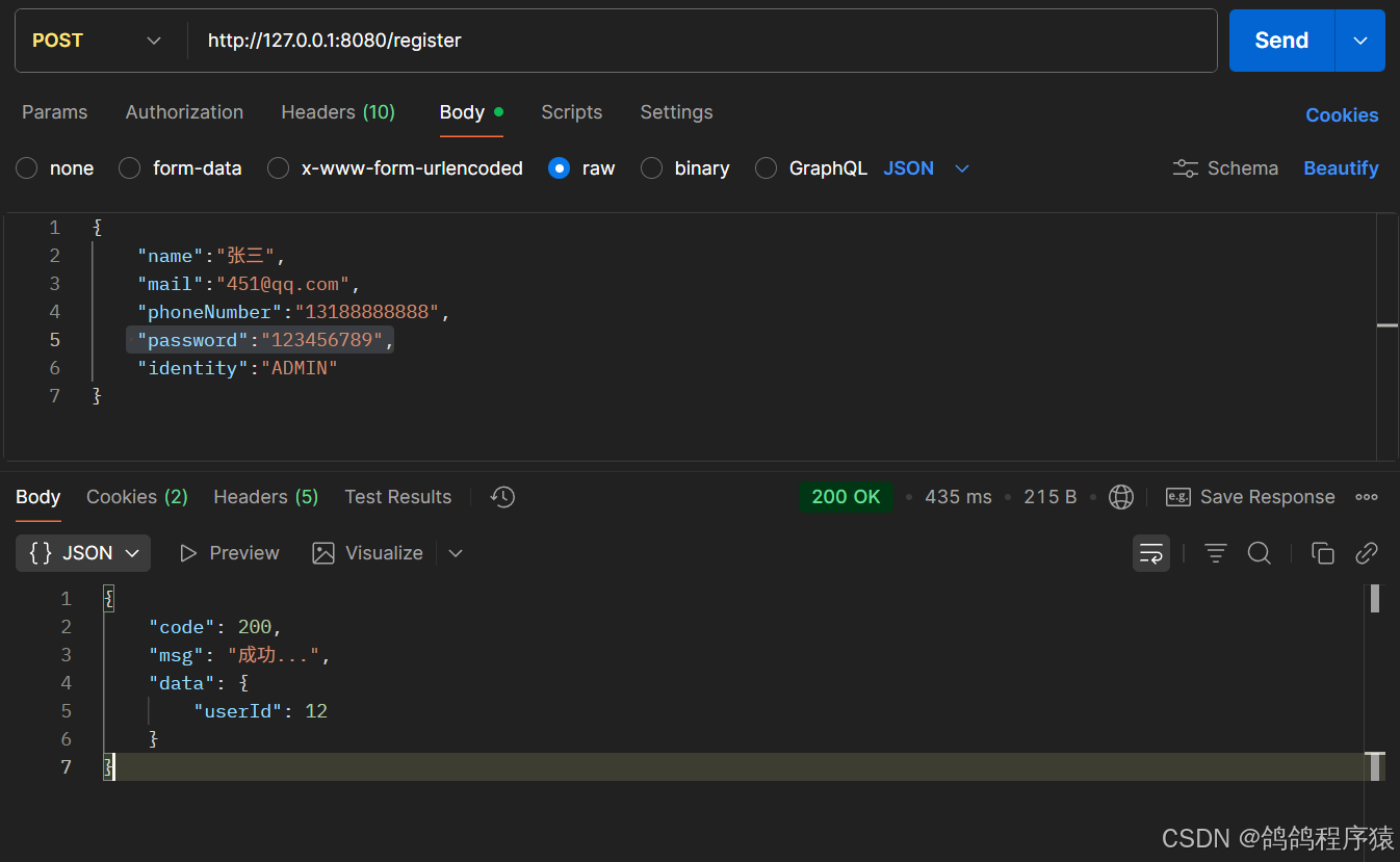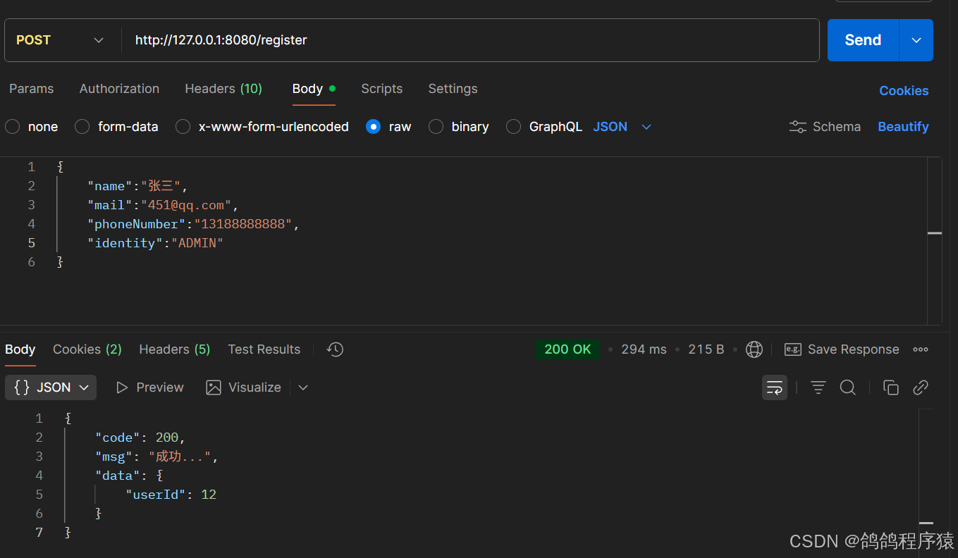 {"code": 200,"data": {"userId": 22},"msg": ""