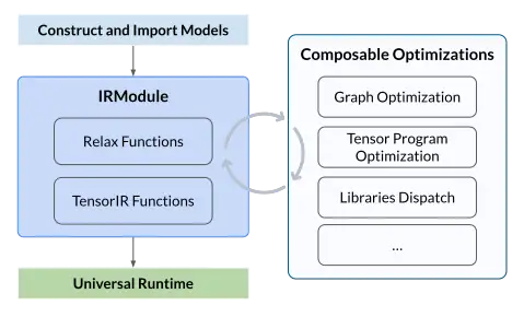- 执行可组合优化: 执行一系列优化转换,例如图优化、张量程序优化和库调度。