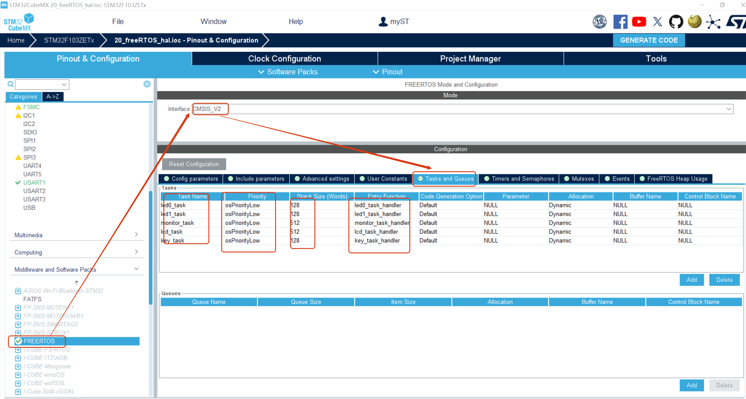 基于 STM32CubeMX 实现按键改变 FreeRTOS 多任务的状态( STM32F103ZET6)