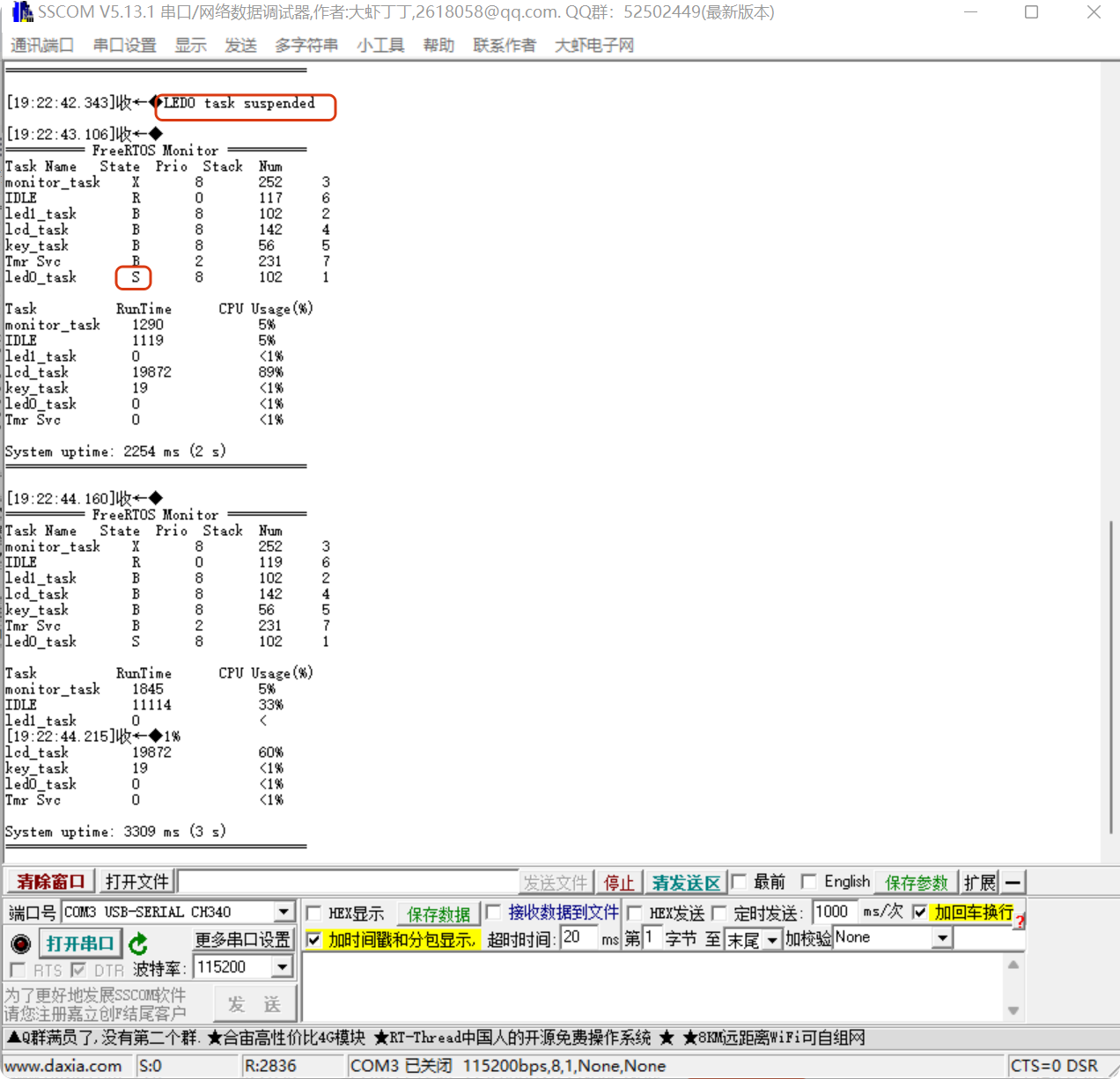 系统运行过程中,通过 串口输出 与 LCD 屏幕显示 实时观察各任务的状态变化,从而验证 FreeRTOS 任务管理机制(包括任务的创建、删除、挂起、恢复等)的实际运行效果与调度特性。