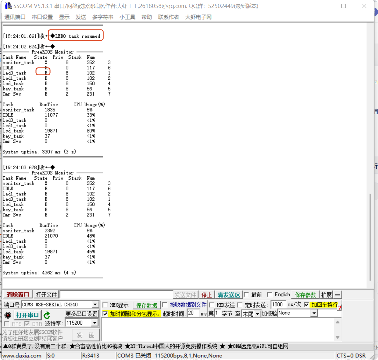 在实验中,通过外部按键实现对任务状态的动态控制: