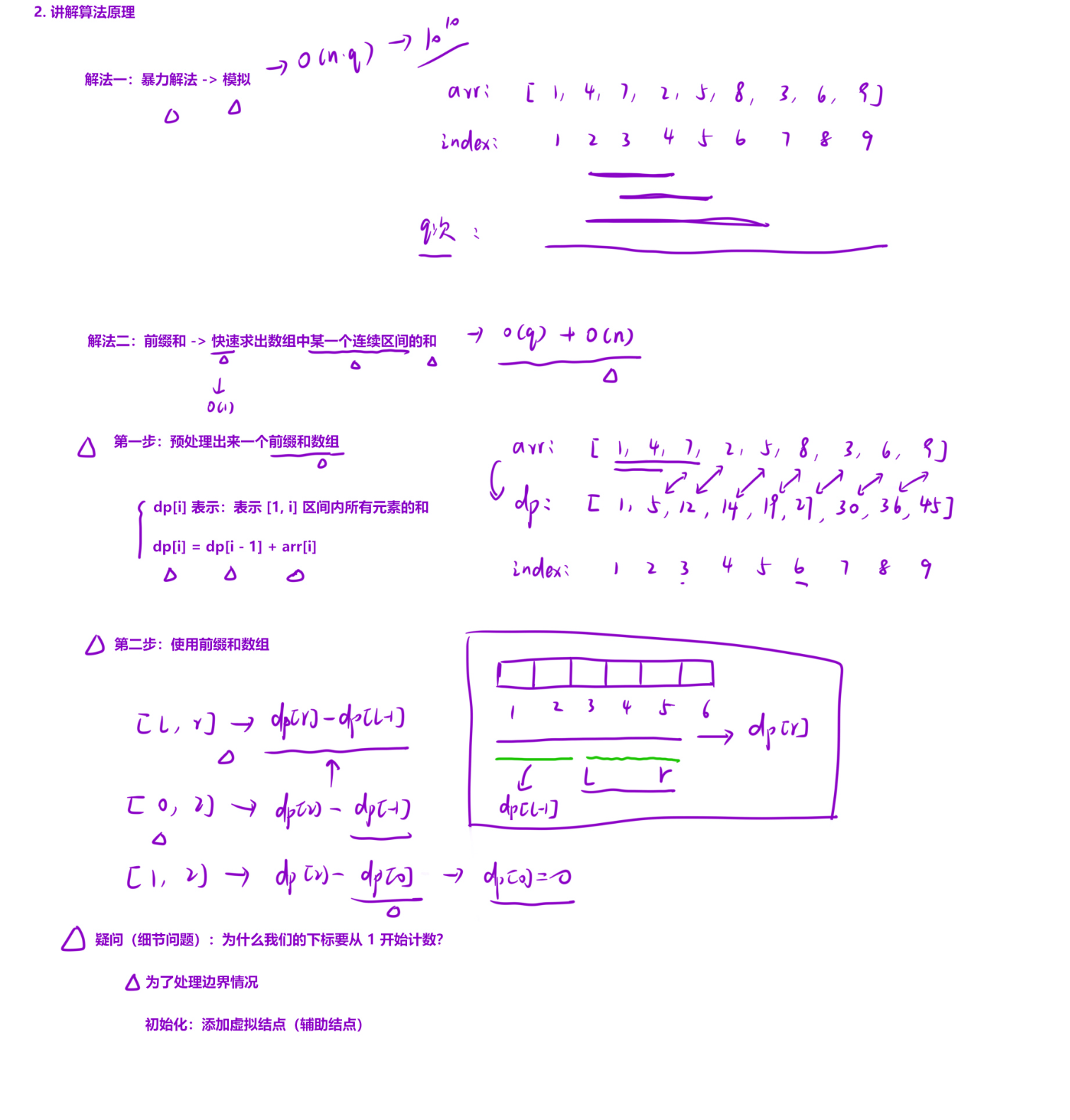 开始存储元素(而非 0),这是为了后续前缀和计算更方便(避免处理i=0