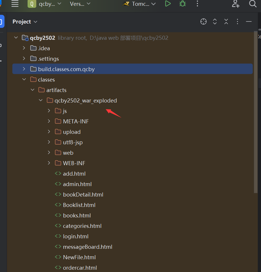 在idea部署项目之后会产生一个classes文件夹,找到里面的_war_exploded文件夹