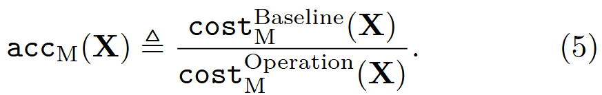 为了评估性能,我们采用了[13]中提出的成本(cost)和准确度(acc)指标。 被定义为达到目标训练PSNR(峰值信噪比)M dB所需的SGD(随机梯度下降)步骤数。因此,我们可以通过方程5获得相应的加速因子,
