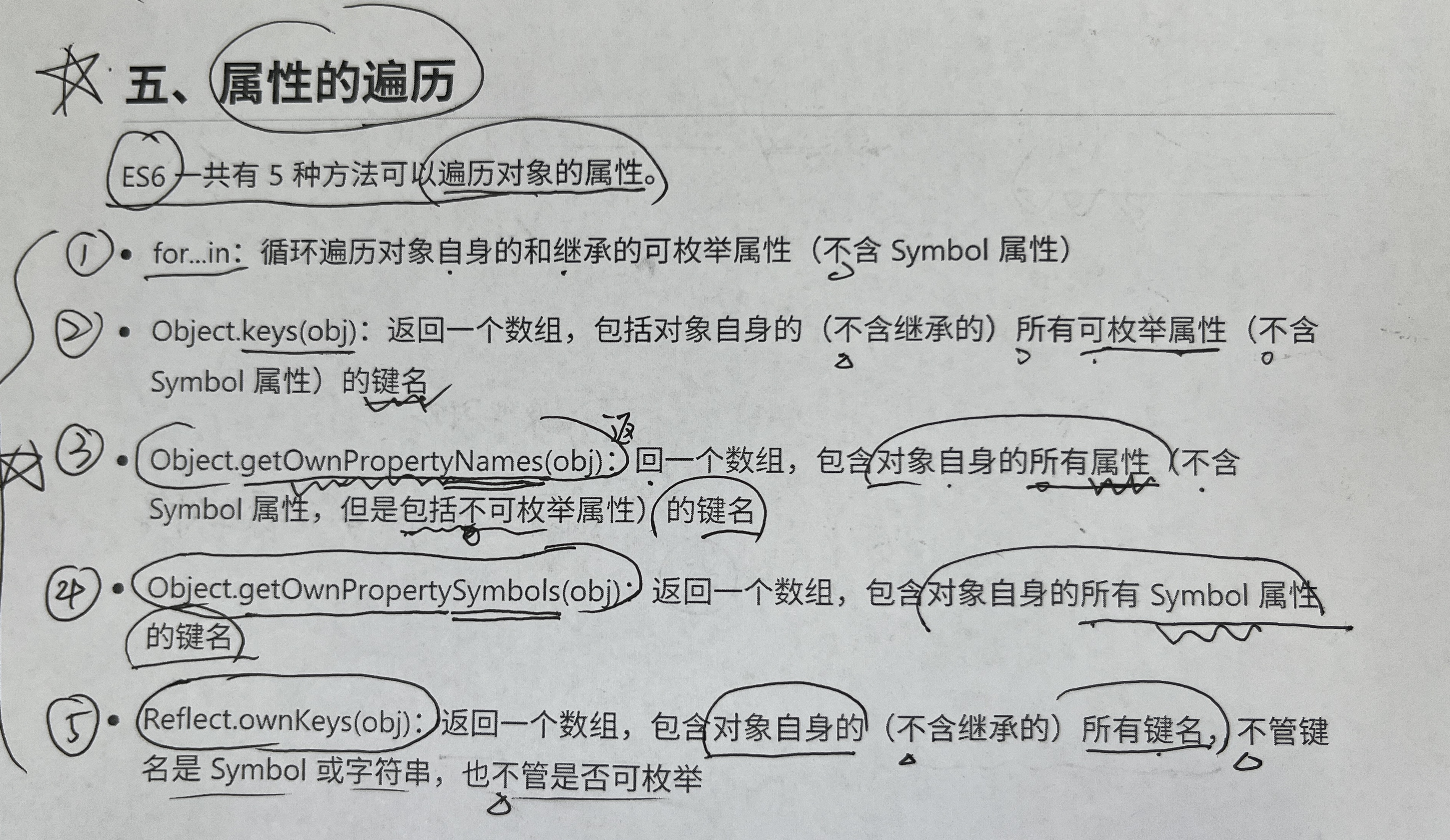 Object.getOwnPropertyNames() :返回一个数组,包含指定对象自身 所有的属性(含可枚举和不可枚举的属性)