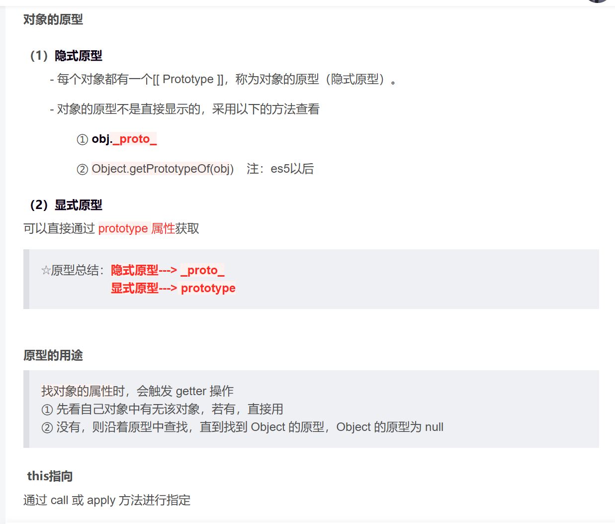 prototype vs proto | prototype 是构造函数的原型对象,__proto__ 是实例指向原型的属性 |