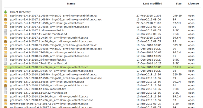 tar -xvf gcc-linaro-6.4.1-2018.05-x86_64_arm-linux-gnueabihf.tar.xz