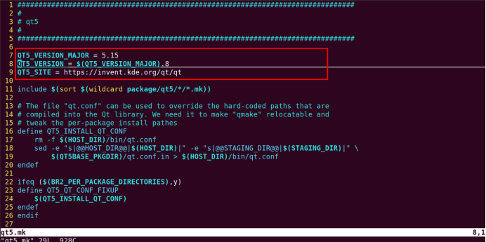 打开** buildroot-2023.02/package/qt5/qt5.mk **配置文件中可以知道buildroot-2023.02提供的Qt5是