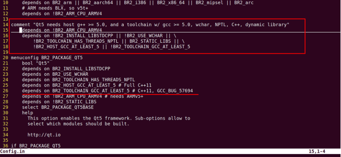 目前我们在buildroot中用的是gcc 4.9.4的编译器,我们在buildroot的menuconfig中搜索** BR2_PACKAGE_QT