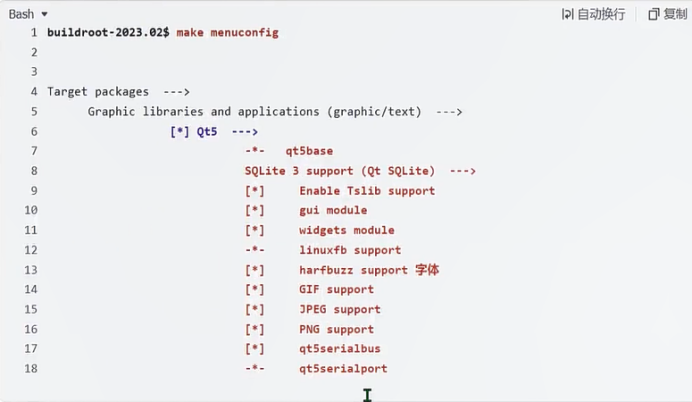 打开** buildroot-2023.02/package/qt5/Config.in **配置文件,找到Qt5的配置选项可以得到如下信息: