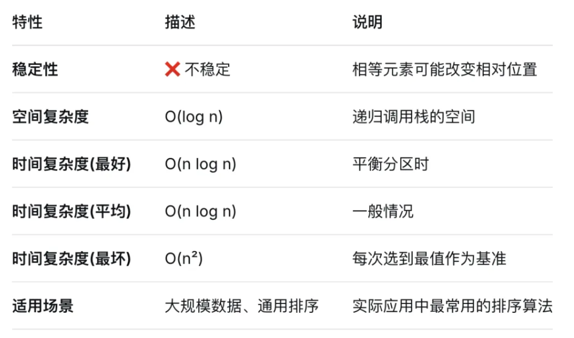 - 避免使用:需要稳定排序的场景、对最坏性能要求严格的场景