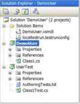 创建好单元测试后,注意到在Solution Explorer中出现了三个新的⽂件。