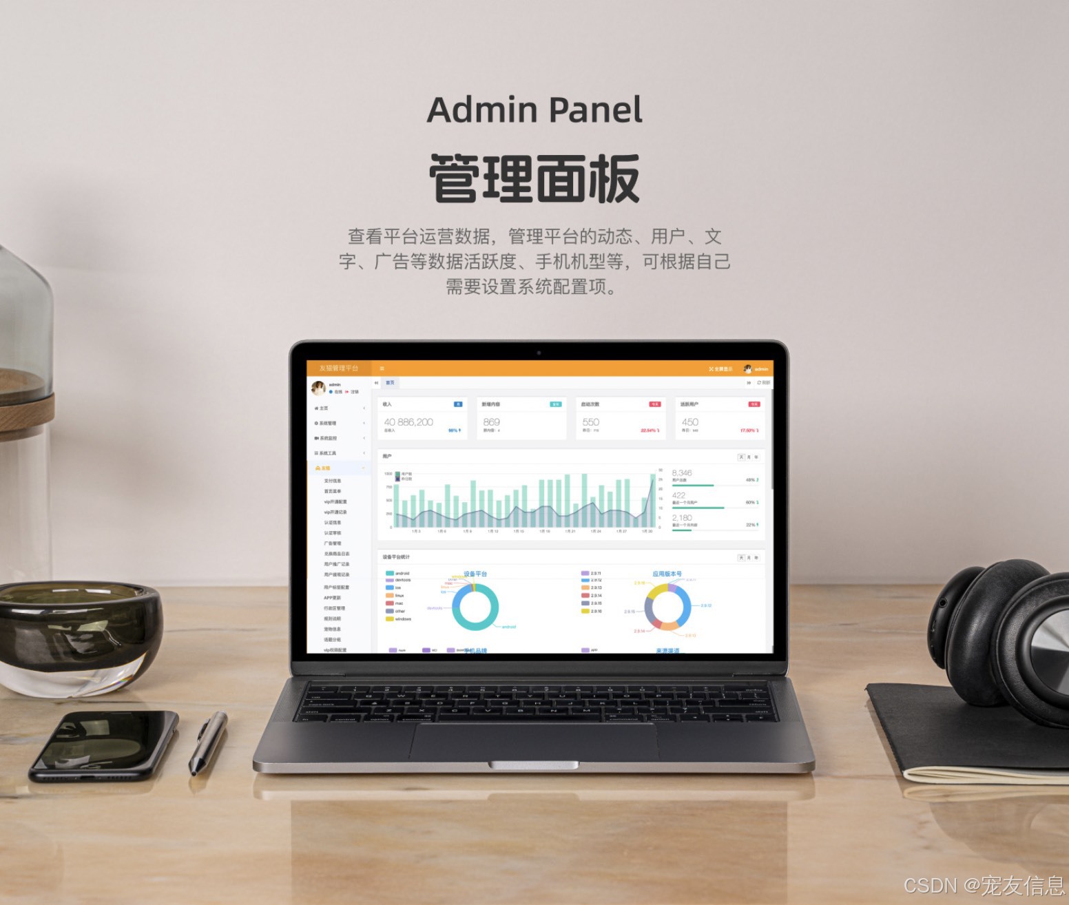 管理后台(PC端):负责系统配置、内容审核、权限控制与商城管理。