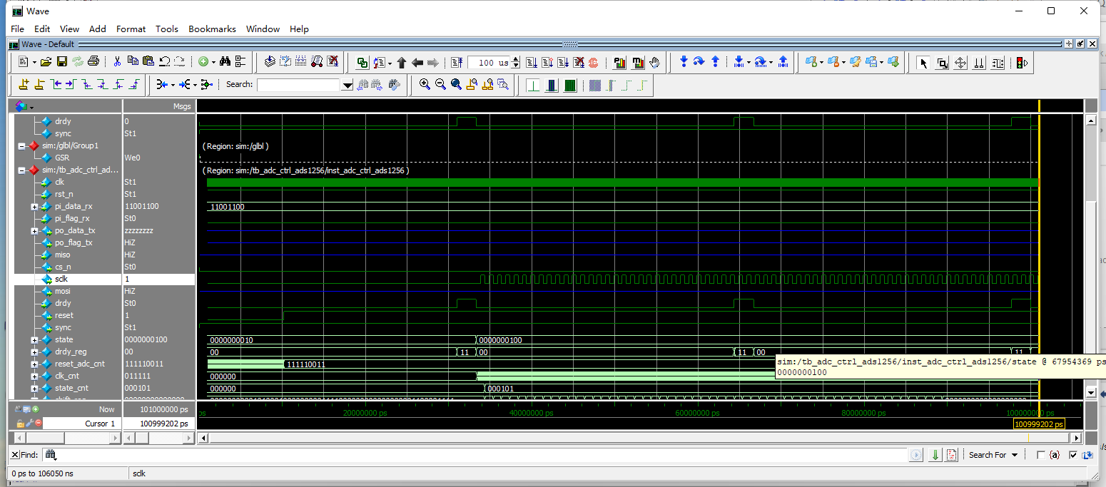 endtask gen_drdy;integer i;beginfor(i=0; i<1000; i=i+1)begindrdy <= 0;#31000;drdy <= 1;#2333;endendendtaskadc_ctrl_ads1256 inst_adc_ctrl_ads1256(.clk (clk),.rst_n (rst_n),.pi_data_rx (pi_data_rx),.pi_flag_rx (pi_flag_rx),.po_data_tx (),.po_flag_tx (),.miso (miso),.cs_n (cs_n),.sclk (sclk),.mosi (mosi),.drdy (drdy),.reset (reset),.sync (sync));endmodule