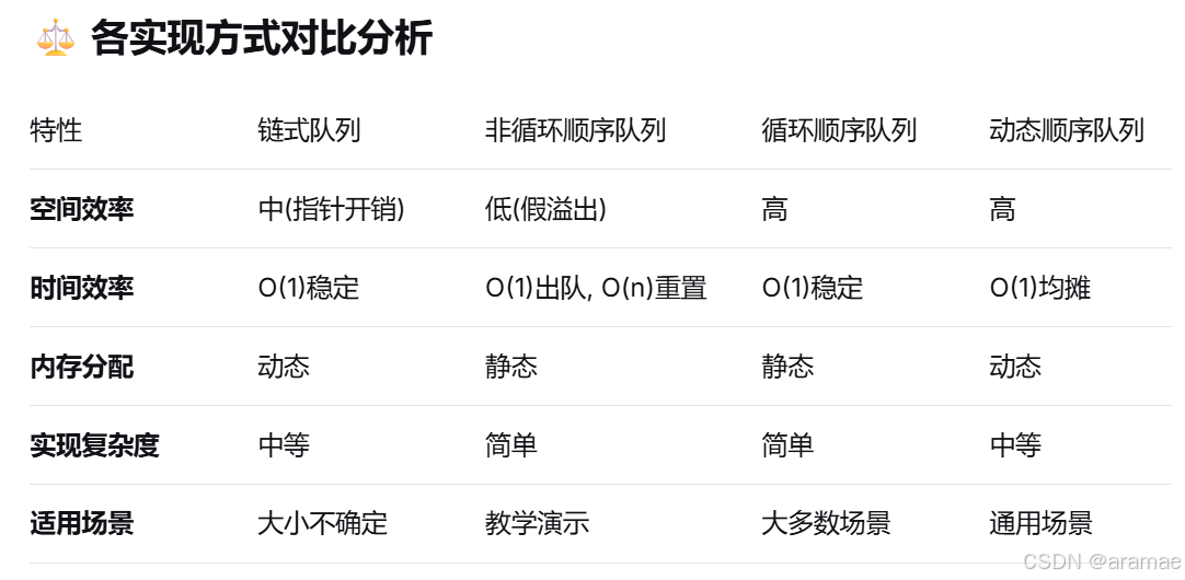 除非有特殊的约束条件要求使用非循环实现,否则在大多数情况下都应该选择循环队列