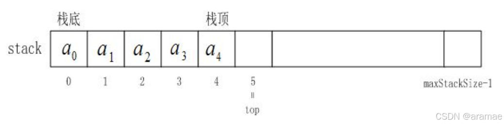 - 栈:一种特殊的线性表,其只允许在固定的一端进行插入和删除元素操作。进行数据插入和删除操作的一端 称为栈顶,另一端称为栈底。栈中的数据元素遵守后进先出LIFO(Last In First Out)的原则。