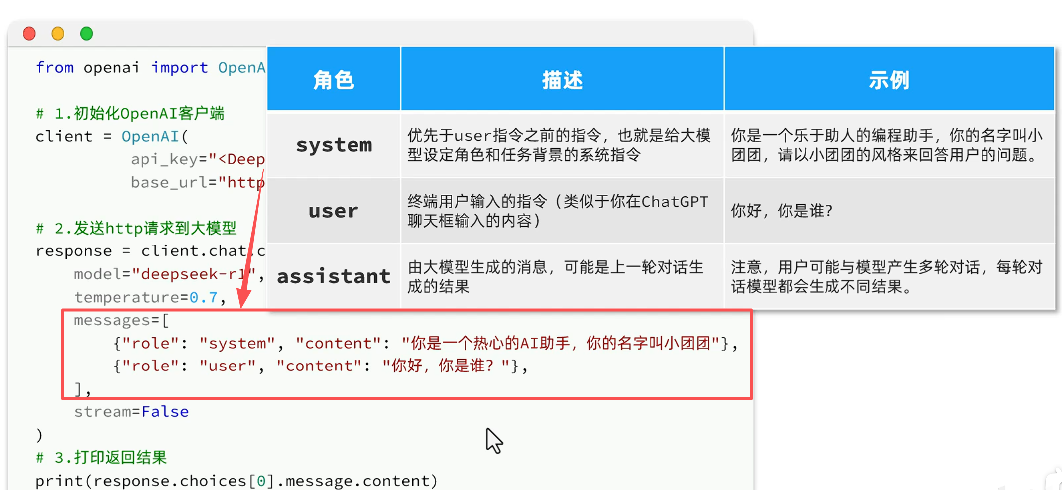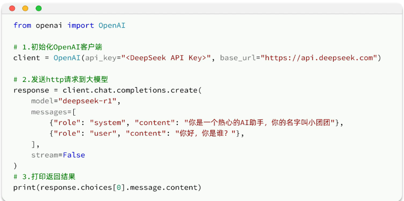 下面是DeepSeek官方给出的一段API示例代码:
