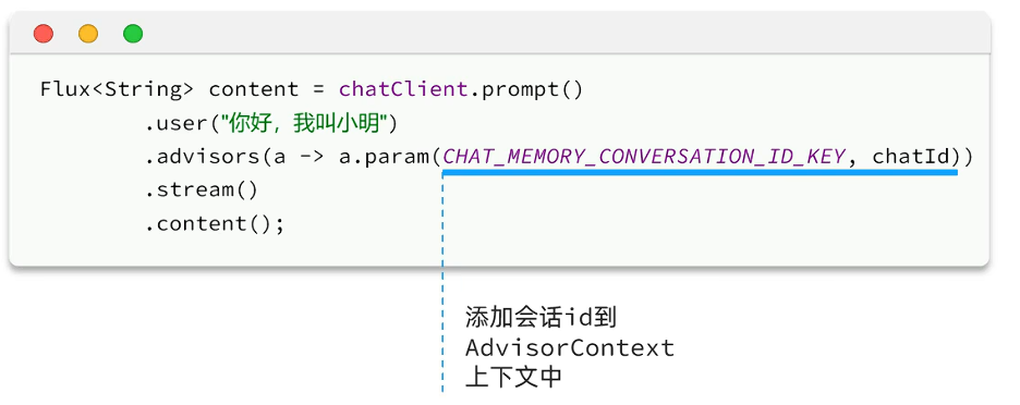 上面advisors里的AbstractChatMemoryAdvisor.CHAT_MEMORY_CONVERSATION_ID_KEY在最新的1.0.3中已经修改为ChatMemory.CONVERSATION_ID