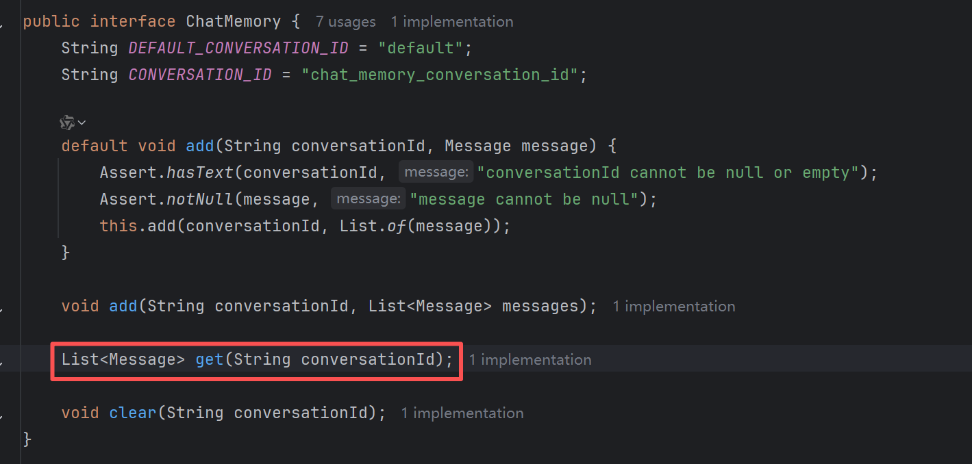 我们创建实例时用的是spring ai提供的方法,我们对话的具体内容也由它进行存储记录,要查询到会话内容就要看它内部是如何查询的。