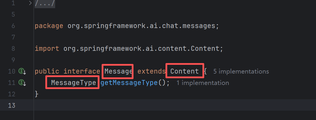 进入到Message里面,我们需要看它返回的是否是我们需要的格式,Message是一个接口,里面有一个方法 getMessageType() 并且其继承了Content。