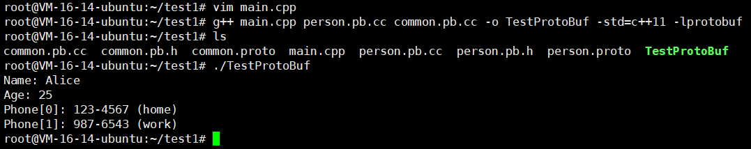 g++ main.cpp my_message.pb.cc -o Test -std=c++11 -lprotobuf
