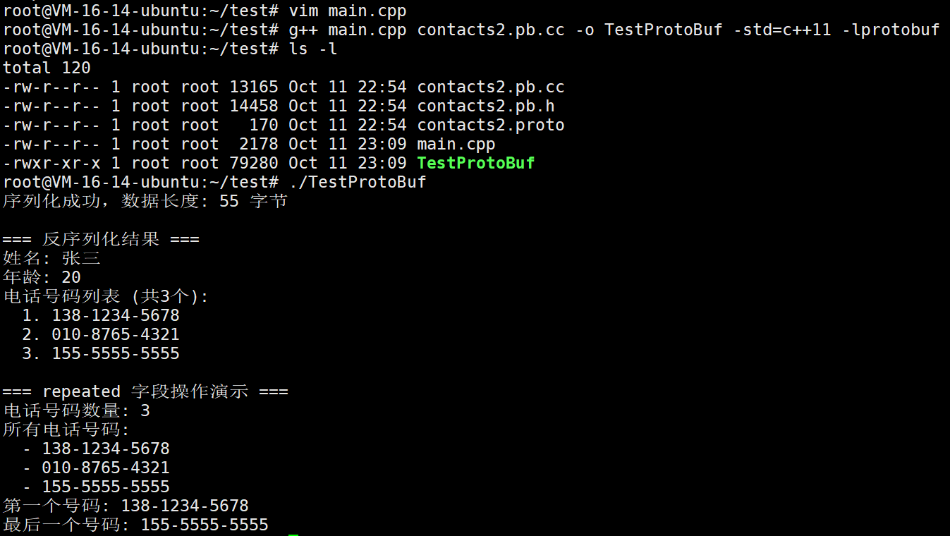 message Person {string name = 1;int32 age = 2;repeated string phone_numbers = 3; // 一个人可以有多个电话号码