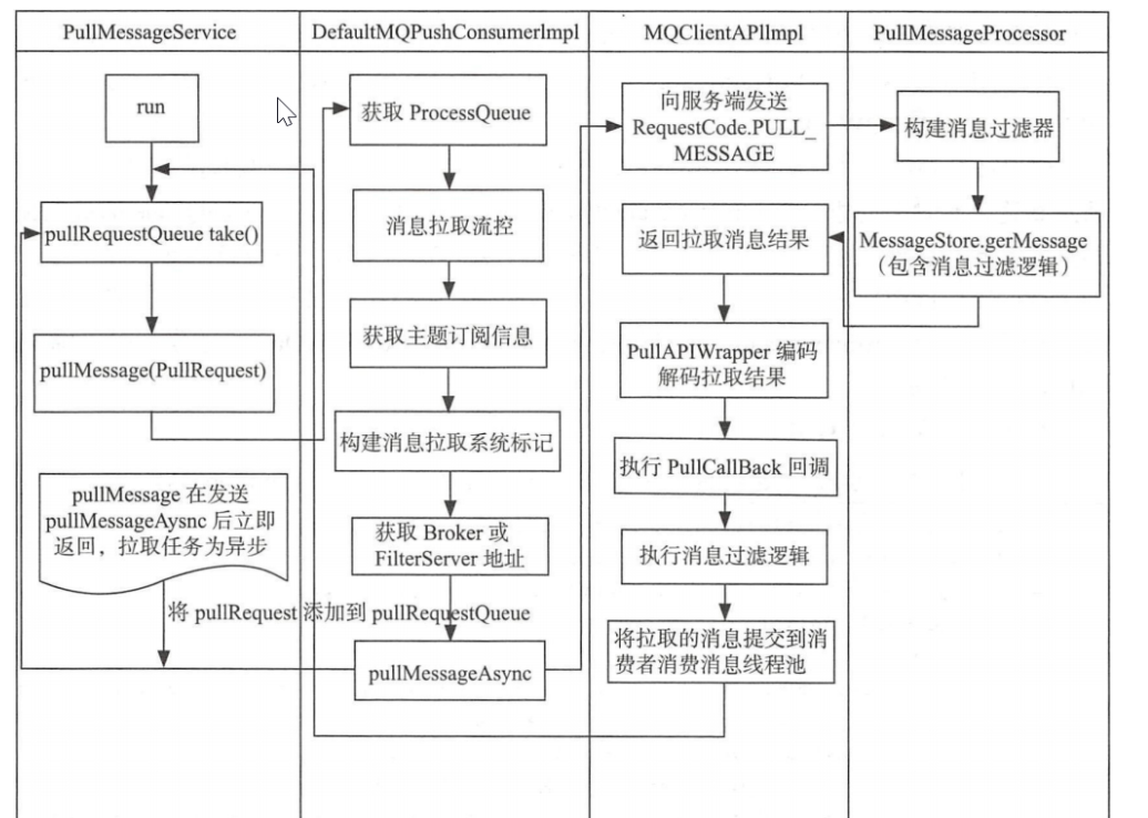 消息拉取由PullMessageService线程根据RebalanceService线程创建的拉取任务进行拉取,默认每次拉取32条消息,提交给消费者消费线程后继续下一次消息拉取。如果消息消费过慢产生消息堆积会触发消息消费拉取流控。