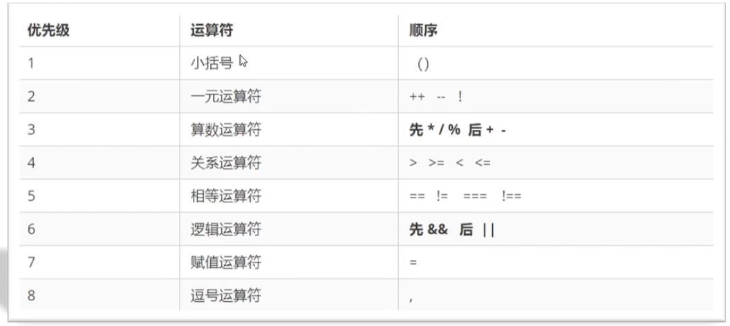 运算符执行的顺序按优先级高低: