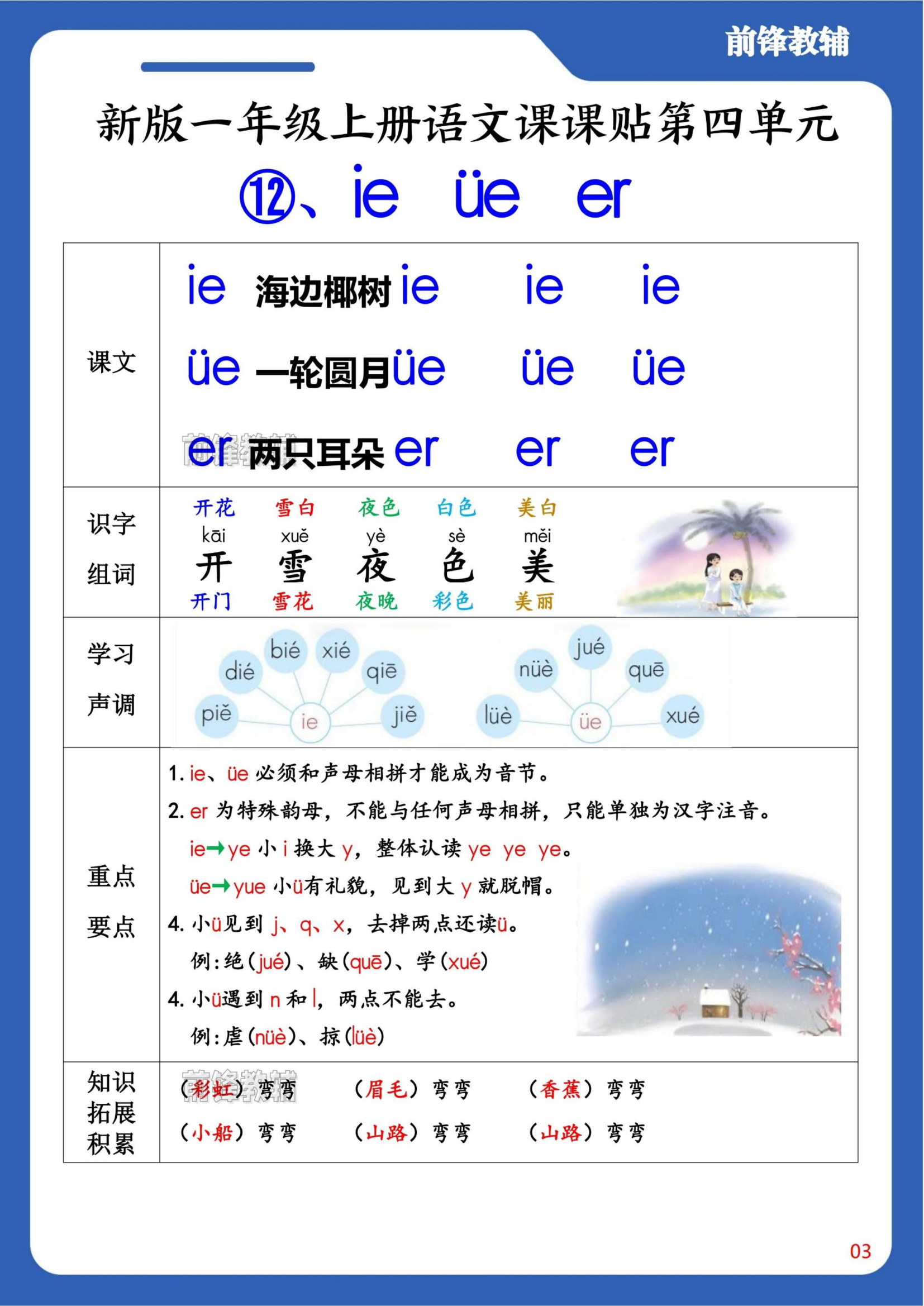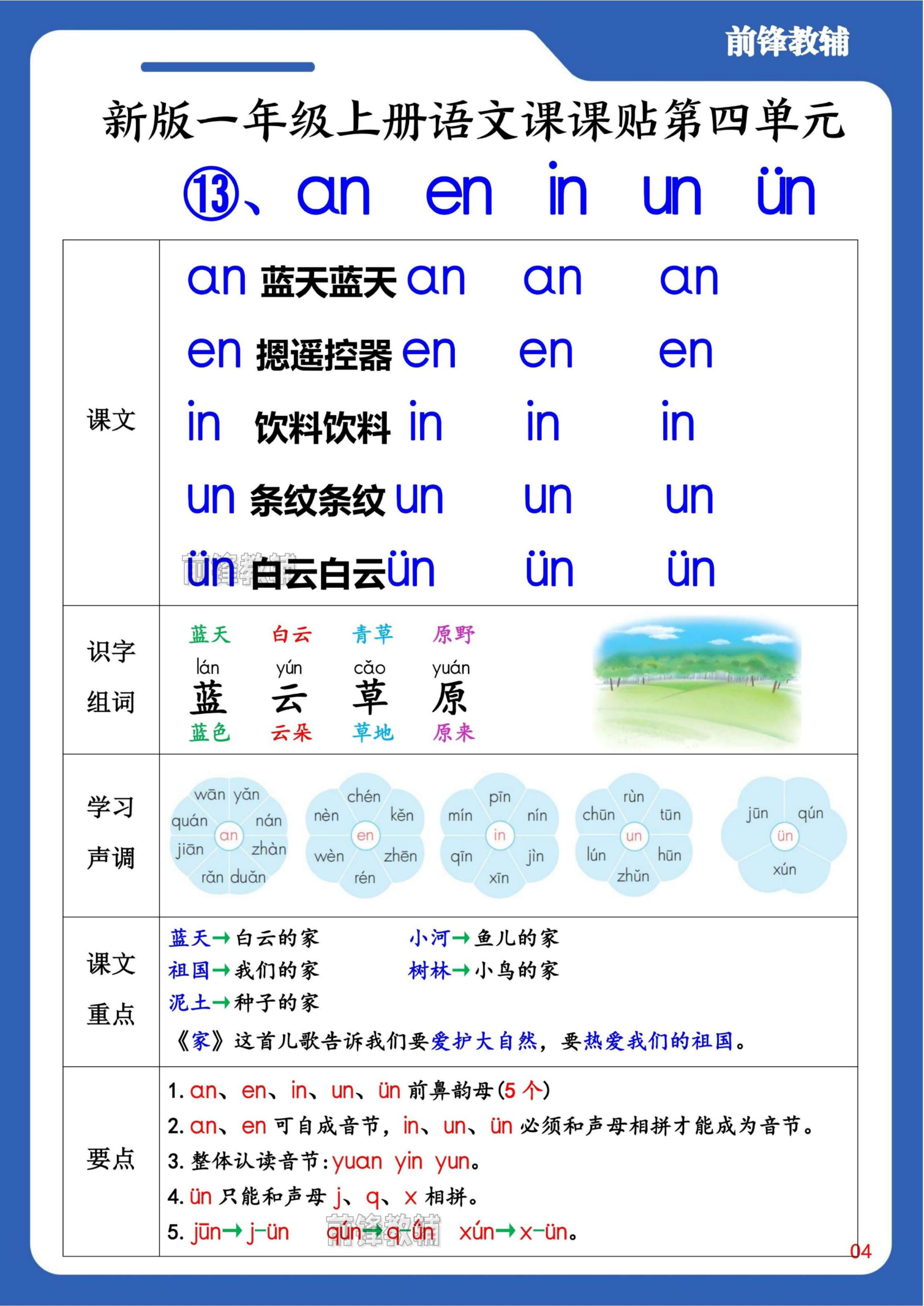 【小学教辅】新版一年级上册语文第四单元课课贴 一年级语文复韵母学习资料 小学拼音考点练习电子版可下载打印|夸克网盘