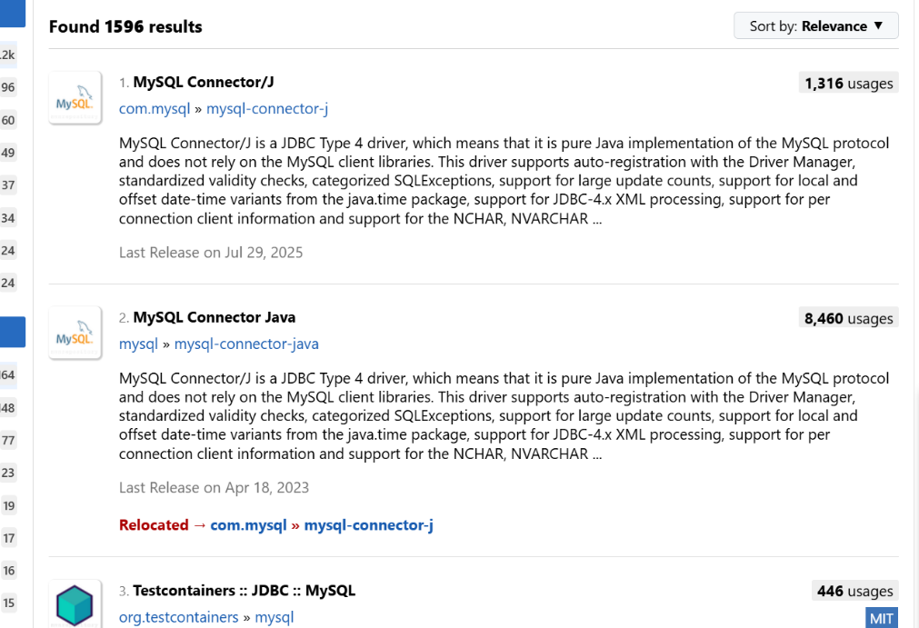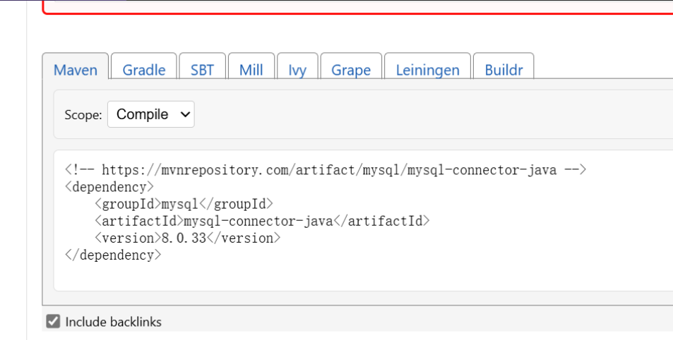 在Maven仓库 mvnrepository.com 搜索MySQL,找到最新版的驱动包