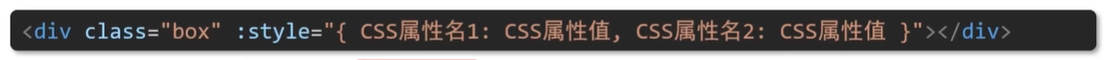 <div id="app"><!-- <div class="box" :style="{width:'400px',height:'400px','background-color':'pink'}"></div> --><div class="box" :style="{width:'400px',height:'400px',backgroundColor:'pink'}"></div></div>
