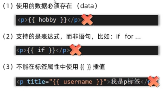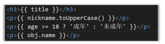 作用:利用表达式进行插值,渲染到页面中。 表达式:是可以被求值的代码