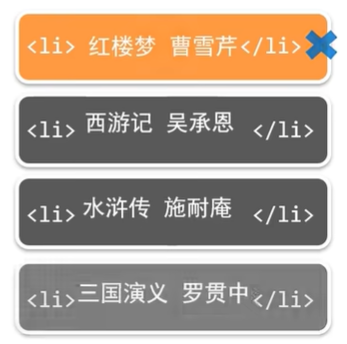 不加key的情况,删除第一个 li 实际是把后面三个移上去,然后把最后一个li删掉,如下所示:
