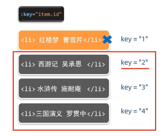 作用:给列表项添加的唯一标识。便于Vue进行列表项的正确排序服用
