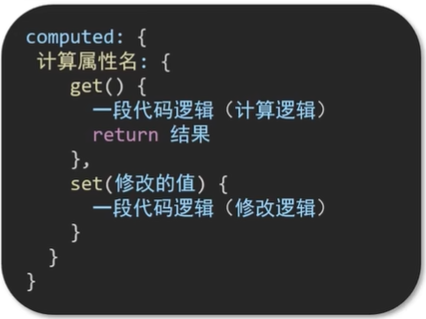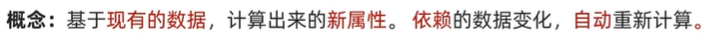 计算属性默认的简写,只能读取访问,不能“修改”,如果要“修改”,需要写计算属性的完整写法
