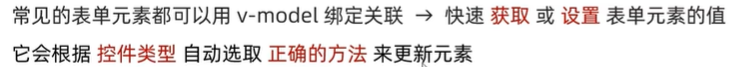 作用:给表单元素使用,双向数据绑定 -> 可以快速获取或设置表单元素内容