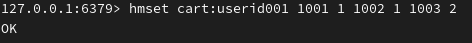 商品加入购物车使用:hmset key field1 value1 [field2 value2 ...] (也可用 hset 多个添加)