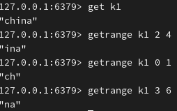 GETRANGE key start end | 返回 key 中字符串值的子字符,end=-1时表示全部 |