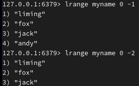 LRANGE key start stop | 获取列表指定范围内的元素 |