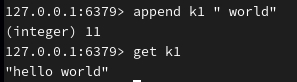 给 k1 键对应的值尾部追加字符串,有空格加引号: